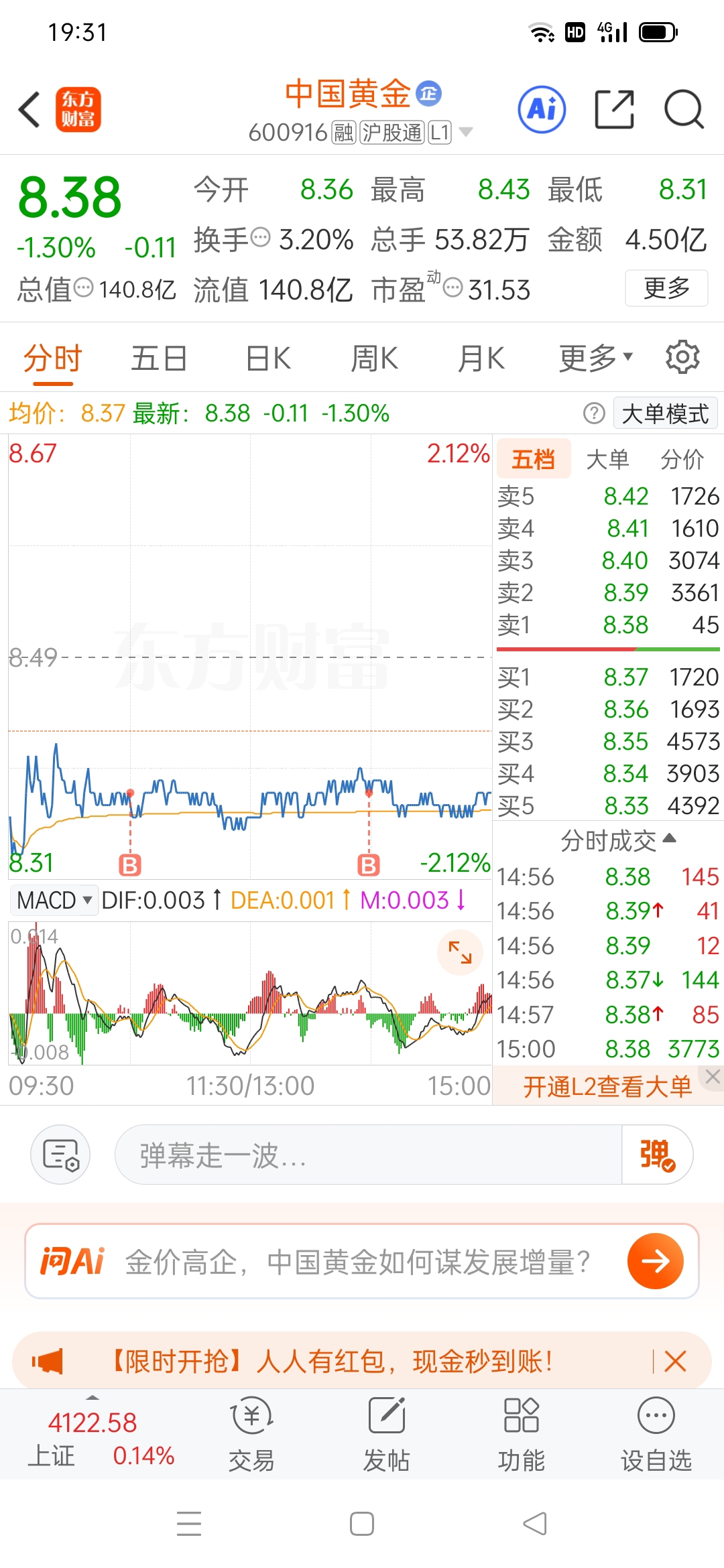 走的真稳,上午买8.38,下午买还是8.38,收盘8.38呵呵