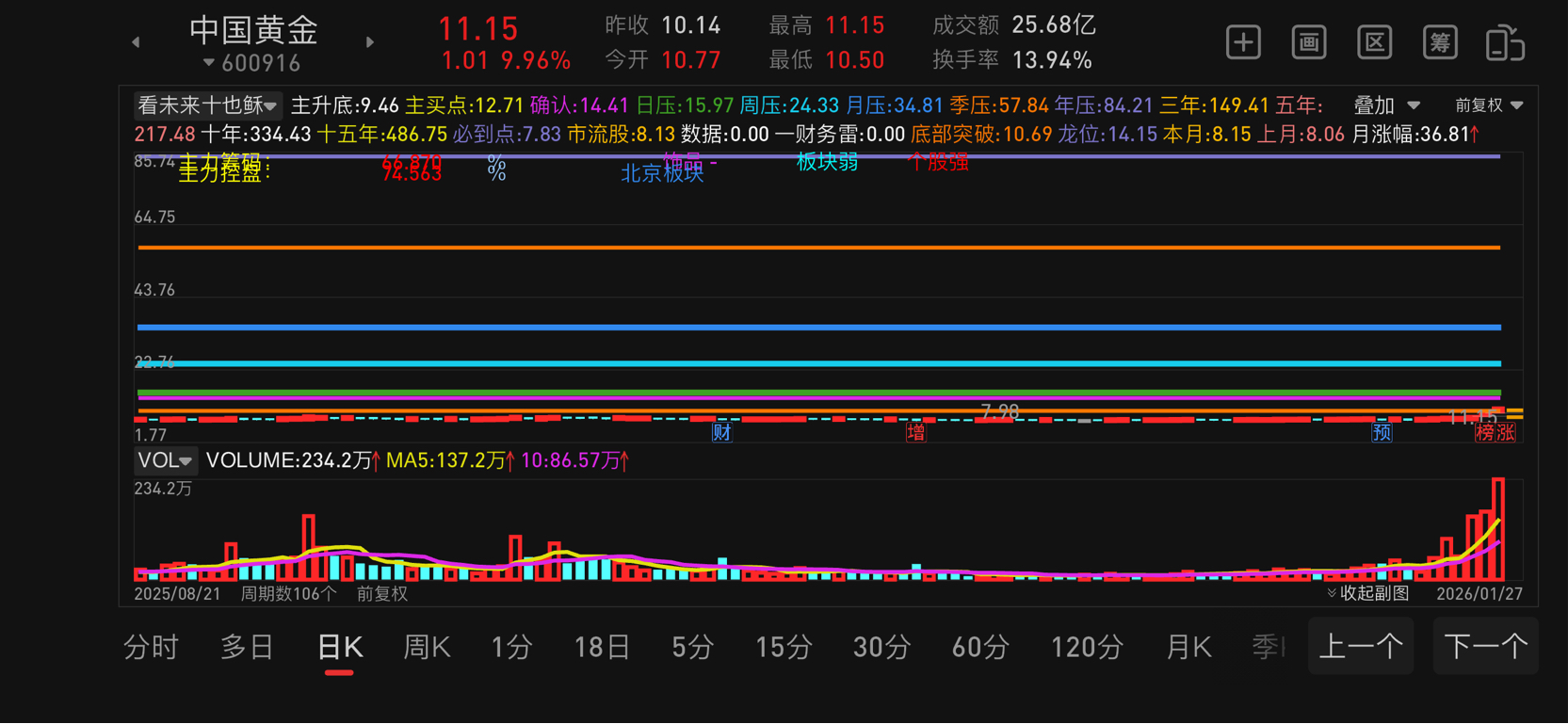 $中国黄金(SH600916)$ $白银有色(SH601212)$ $亿晶光电(SH600537)$ #炒股日记# #复盘记录# #强势机会# #股市怎么看# #周度策略#