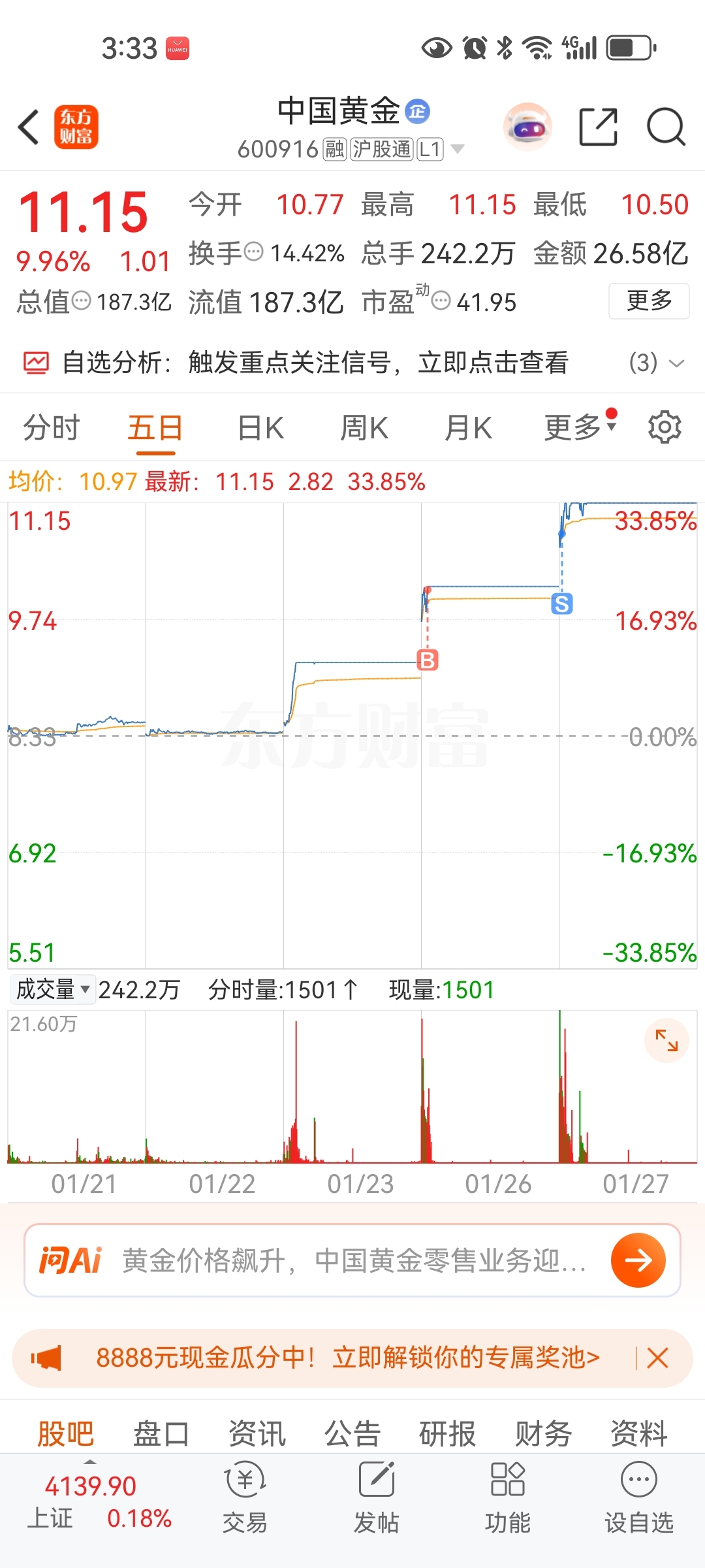 $中国黄金(SH600916)$ #收盘点评# #复盘记录# #股市怎么看#