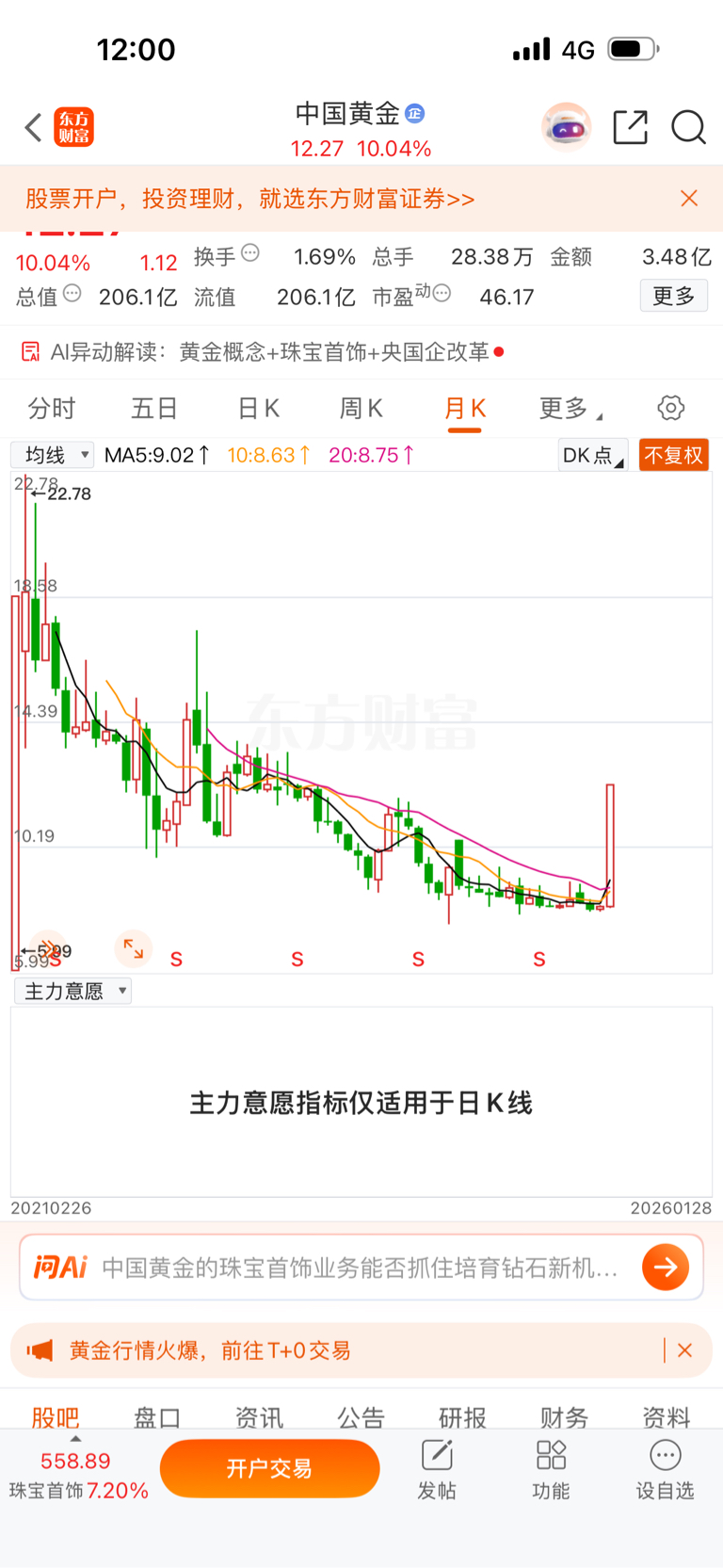 $中国黄金(SH600916)$ 跌了五年了,现在才12块钱