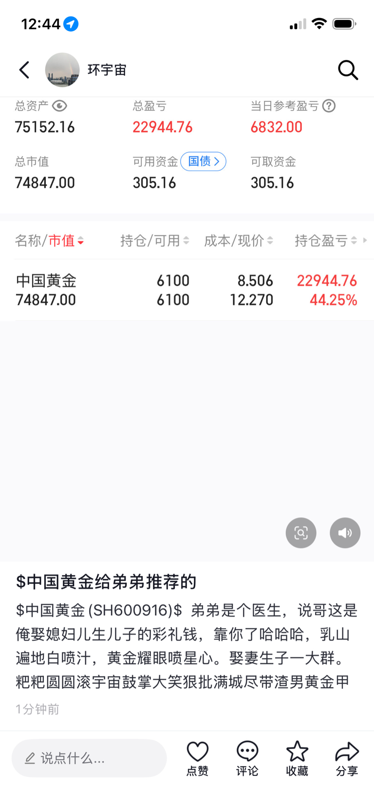 $中国黄金(SH600916)$ 给弟弟推荐的