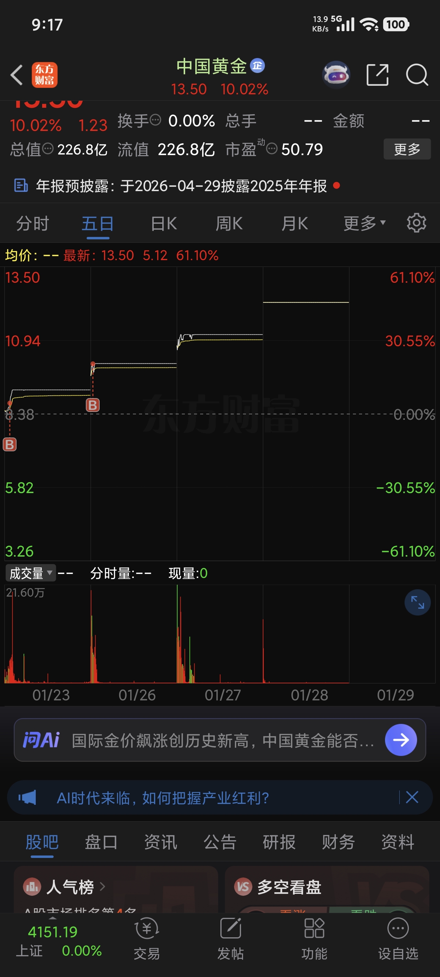 $中国黄金(SH600916)$ 啊啊啊!!!