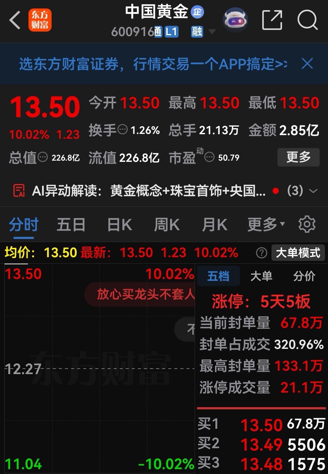 以12.5继续挂单减仓卖出中国黄金,这个黄金还真是碰上了好光景,天天涨停,这二天