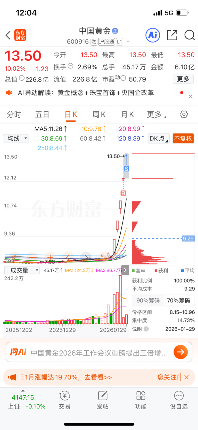 $中国黄金(SH600916)$ 昨天买入的念头是因,今天卖出的念头是果,一因一果形成所谓“知行合一”,无惧,也无悔,不主观看多一个板块,也不主观看空一个板块。