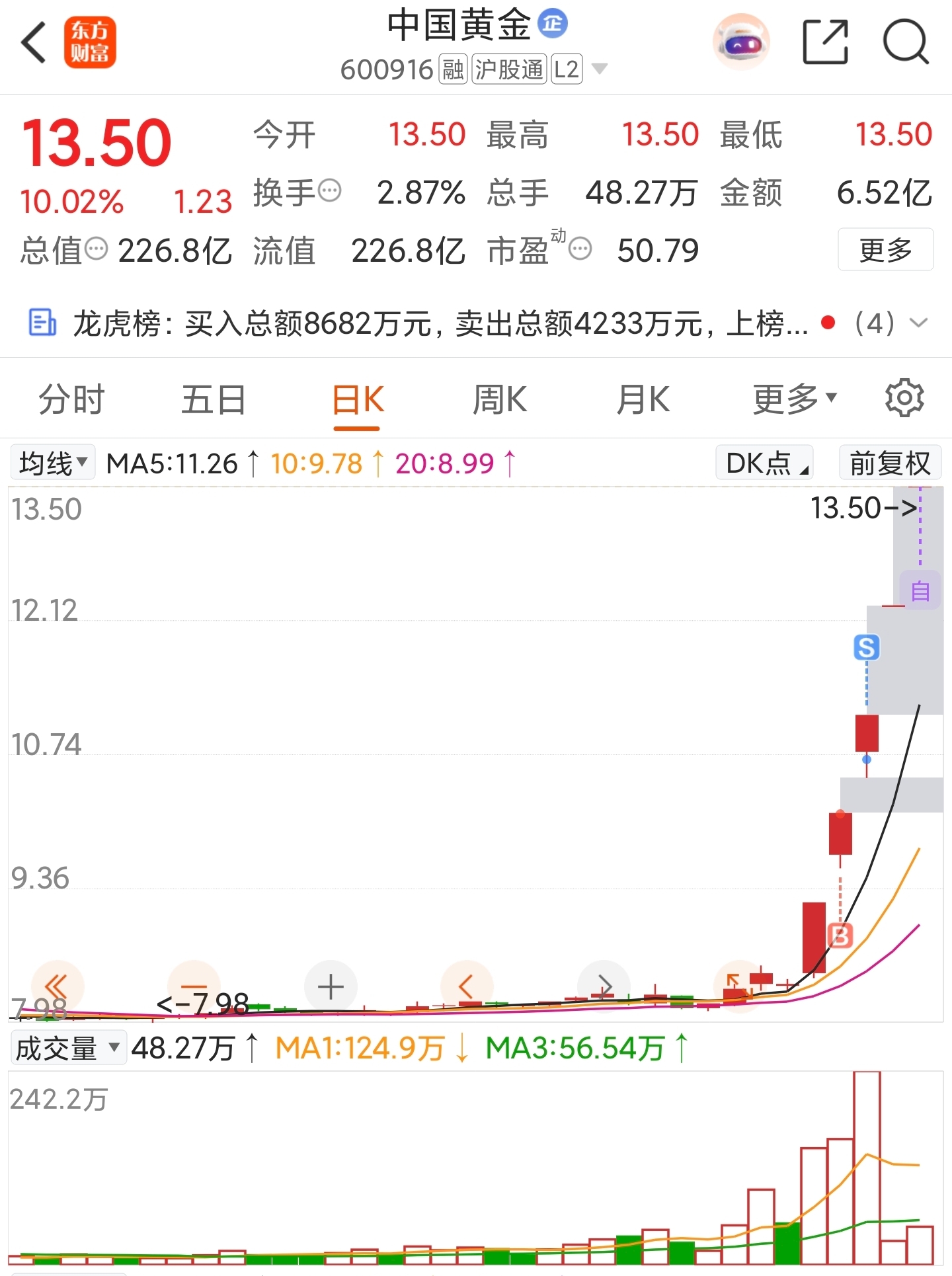 $中国黄金(SH600916)$ 哎,心里莫名升起一股淡淡的忧伤。