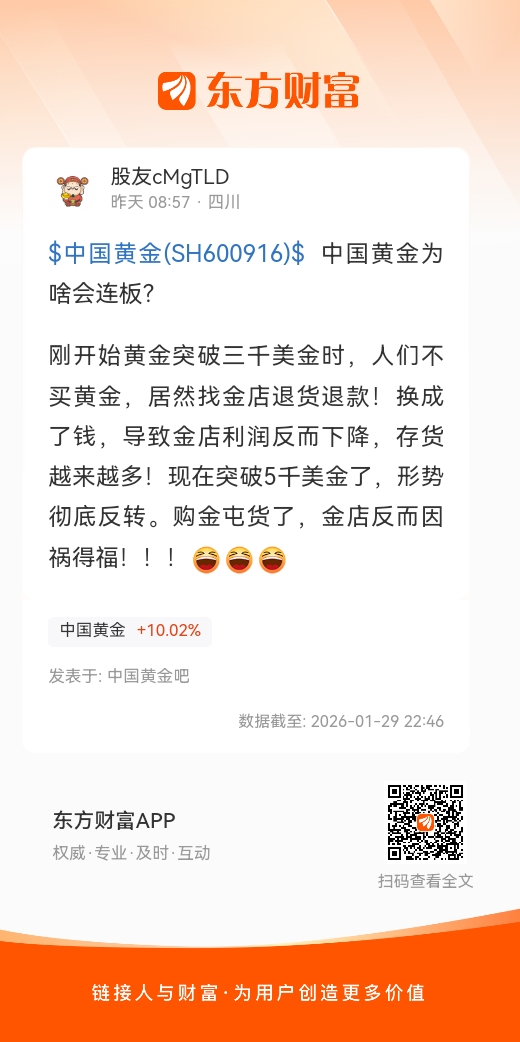 $中国黄金(SH600916)$ 中国黄金为啥会连板?