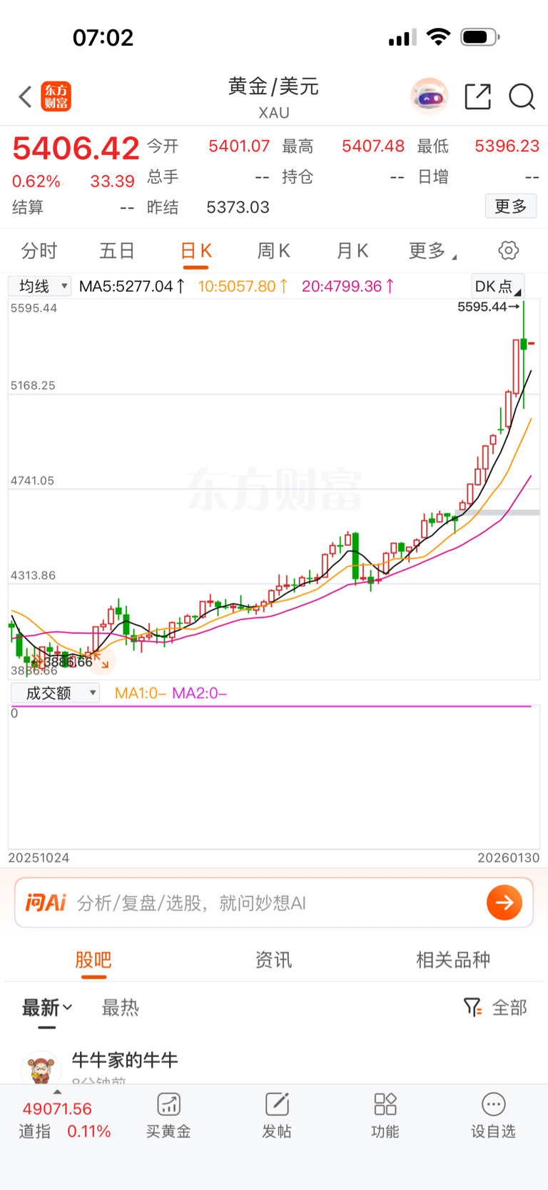 $中国黄金(SH600916)$ 黄金又上5400了,昨晚就是把多头止损打掉,不然都做多,都赚谁的钱,懂得都懂