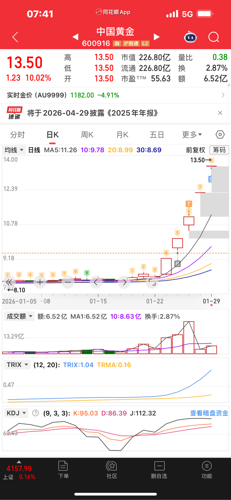 $中国黄金(SH600916)$ 昨天减仓了,今天在减点。