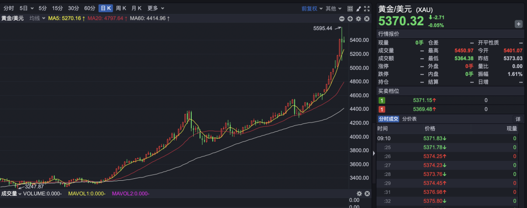 1月29日,现货黄金价格猛冲迅速突破5500美元,最高一度逼近5600美元,再度刷新纪录。此前一天,现货黄金涨势不止,盘中首次突破5300美元/盎司,日内暴涨120美元,再创历史新高。