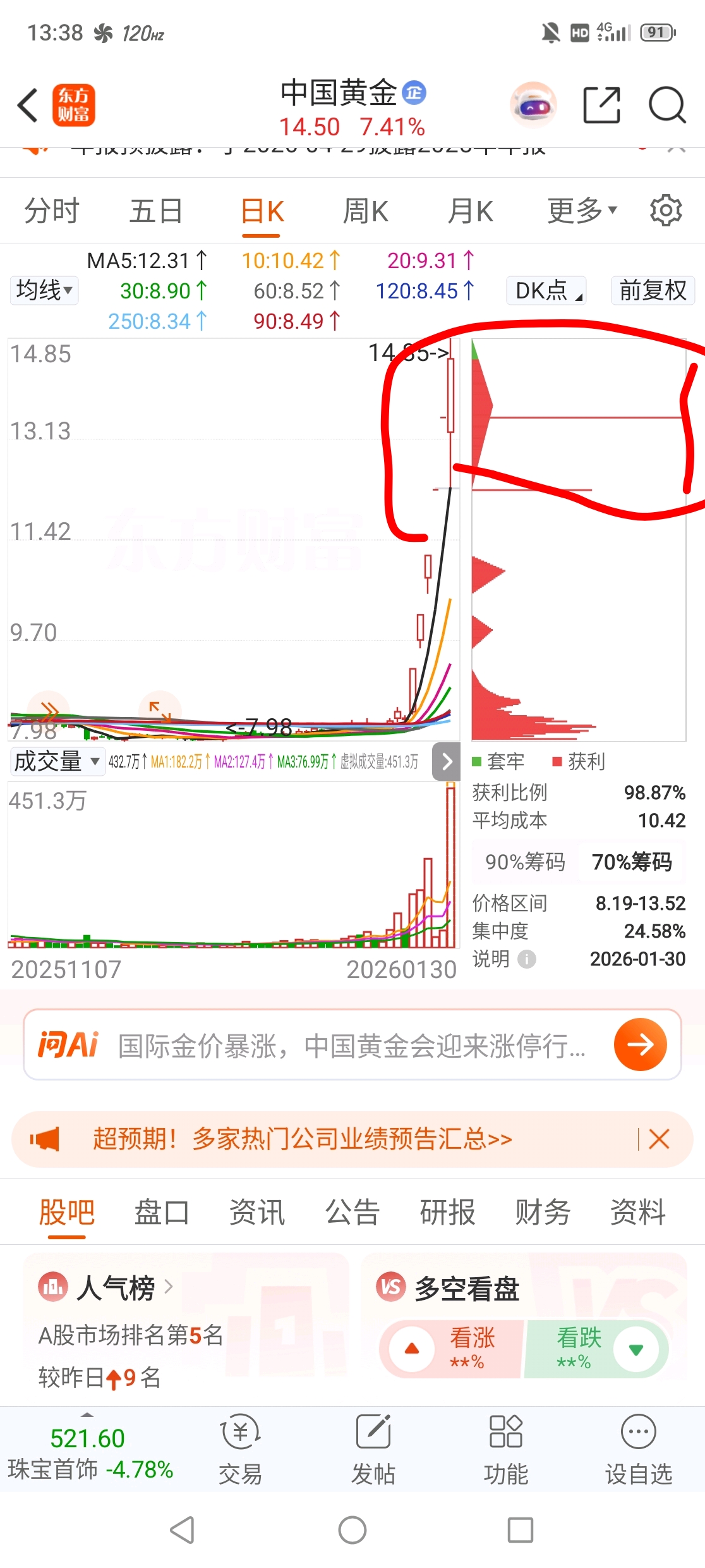 $中国黄金(SH600916)$ 注意看我画的哪里,明显有主力机构接盘了,爽死了,难受没有仓位买了