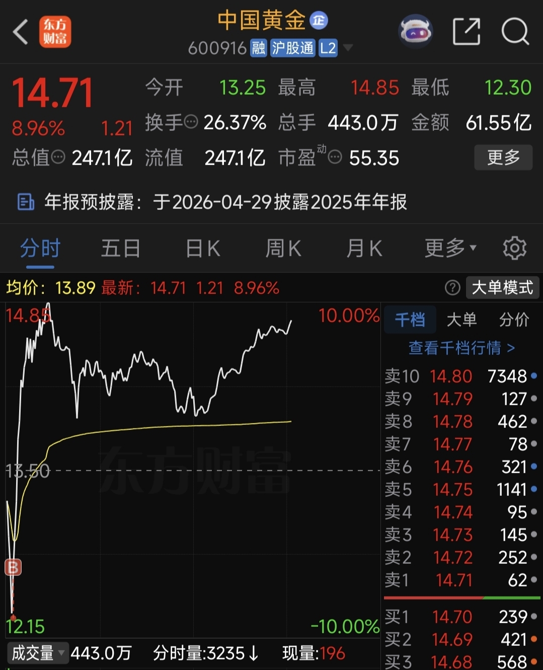 $中国黄金(SH600916)$ 太夸张了,比最低点多一分钱买入,不算手续费可能就是最低点
