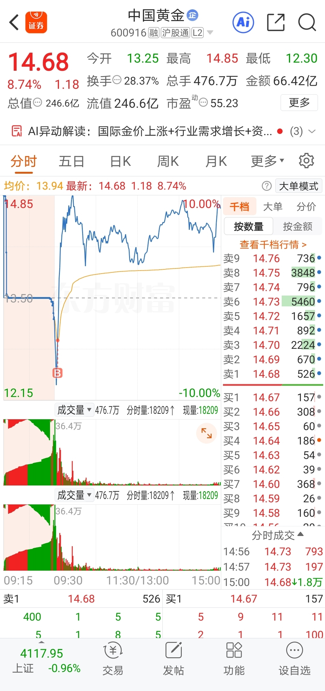 开盘出了浙文和岩山,主打隔日套利,抄底中国黄金,进了天奇