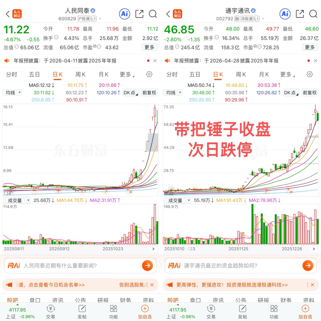 这种顶部带把锤子图形收盘的,次日基本跌停,中国黄金也如此,希望不要低开太多,开盘就跑