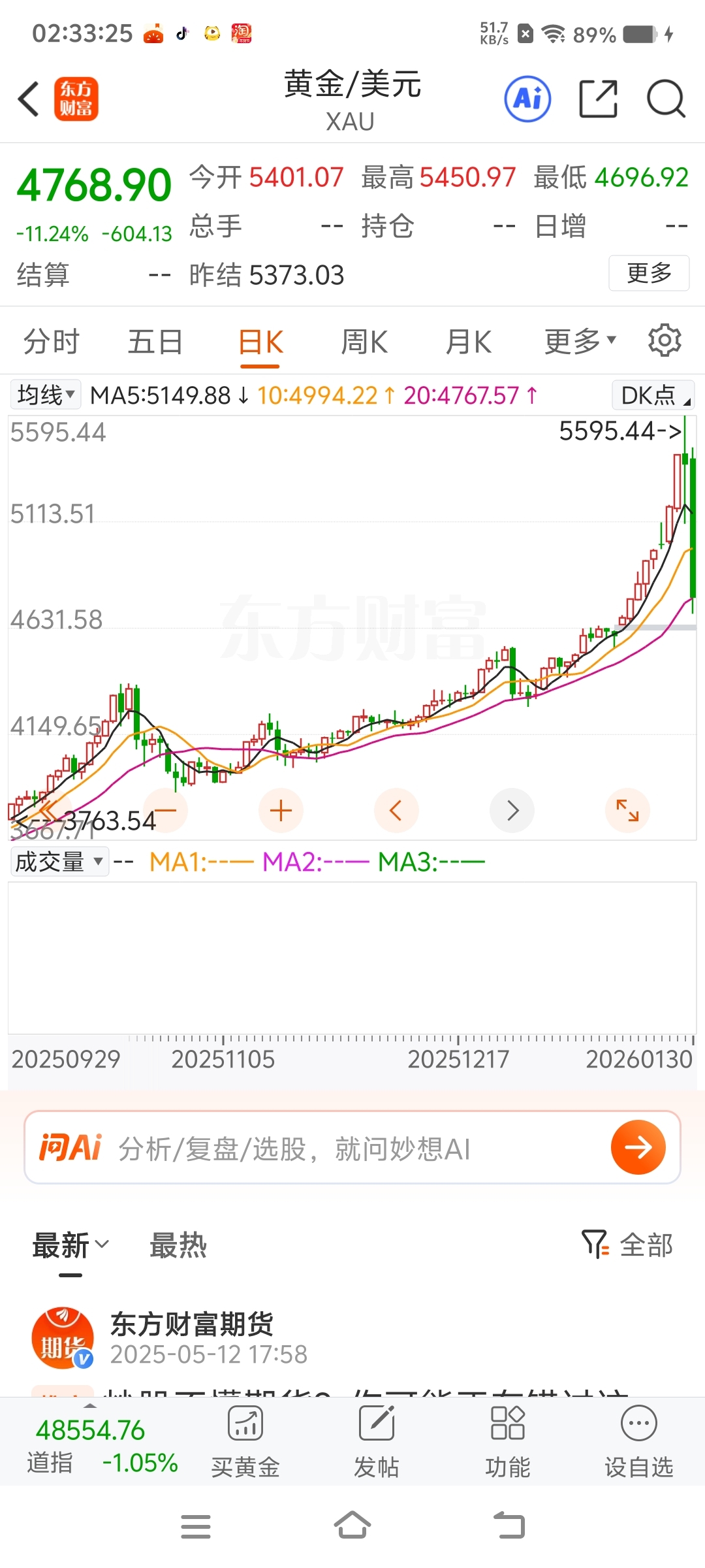 恭喜上车的朋友们,金价跌回一周前股价呢