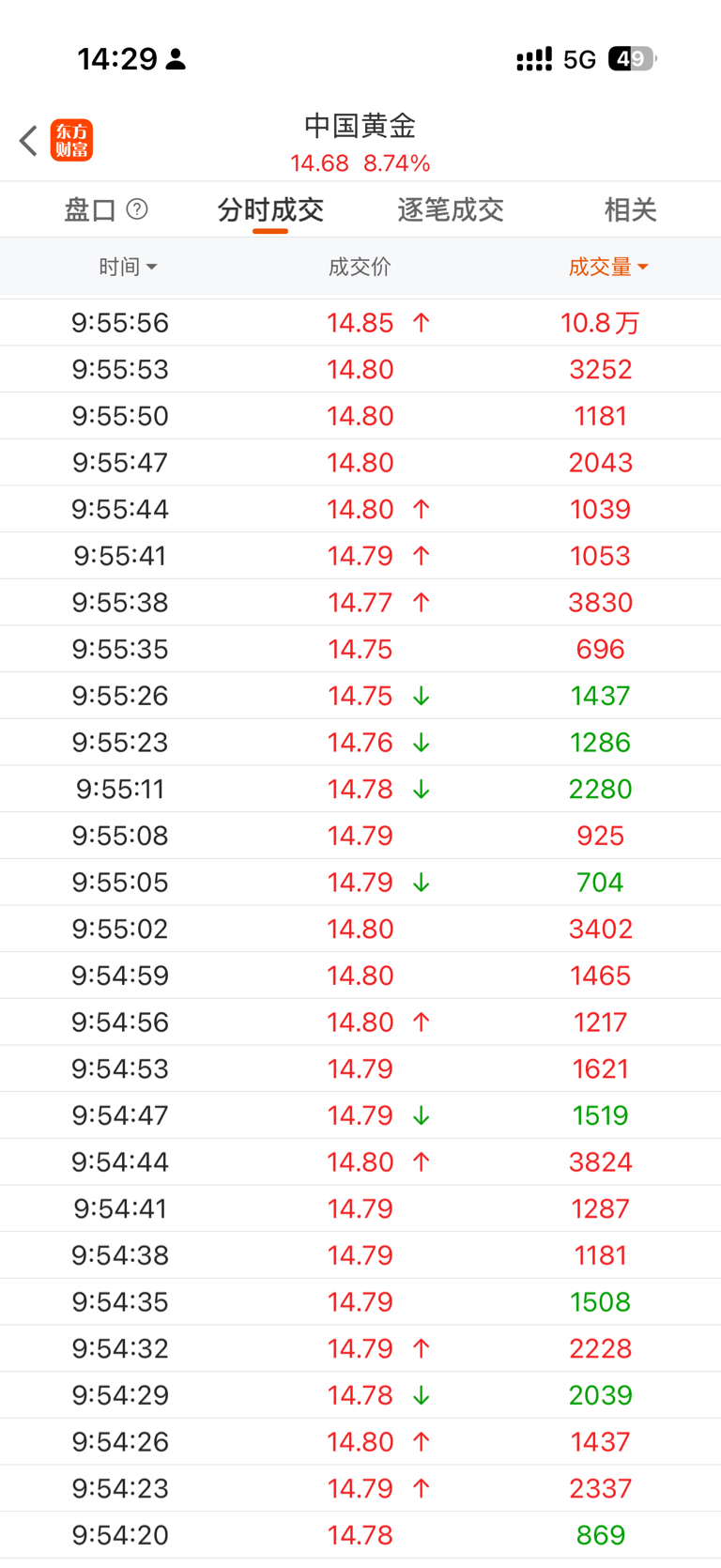 $中国黄金(SH600916)$ 10.8万手买单,买完以后抛压大,就撤了没封住,难道主力买了以后,亏钱的么