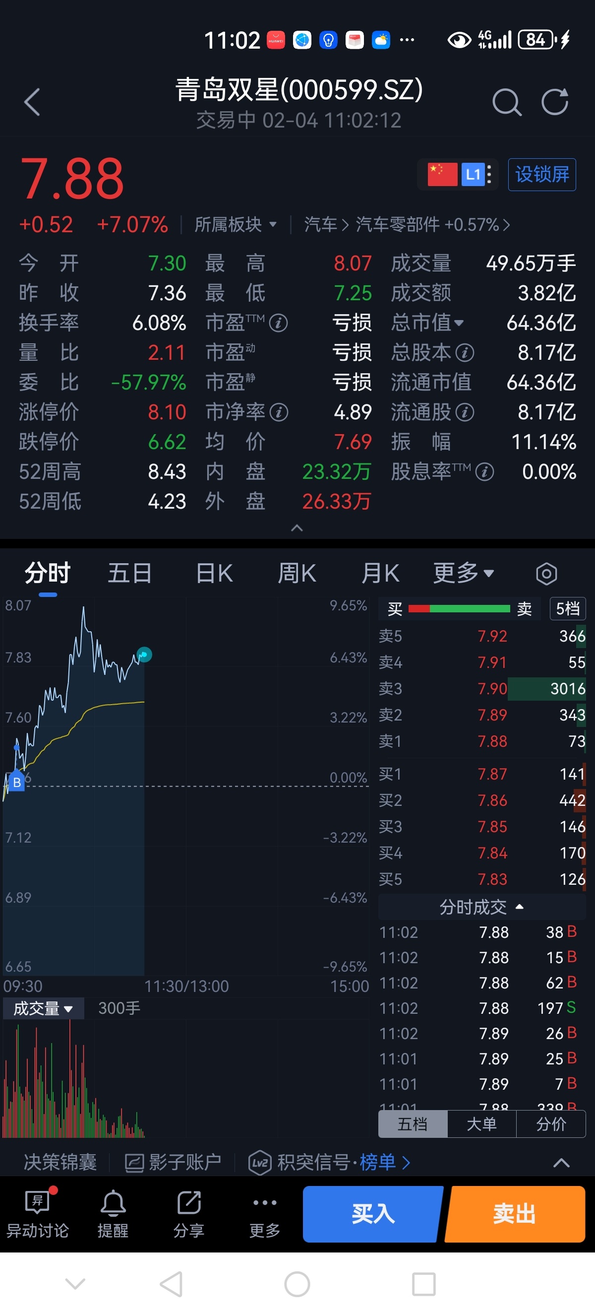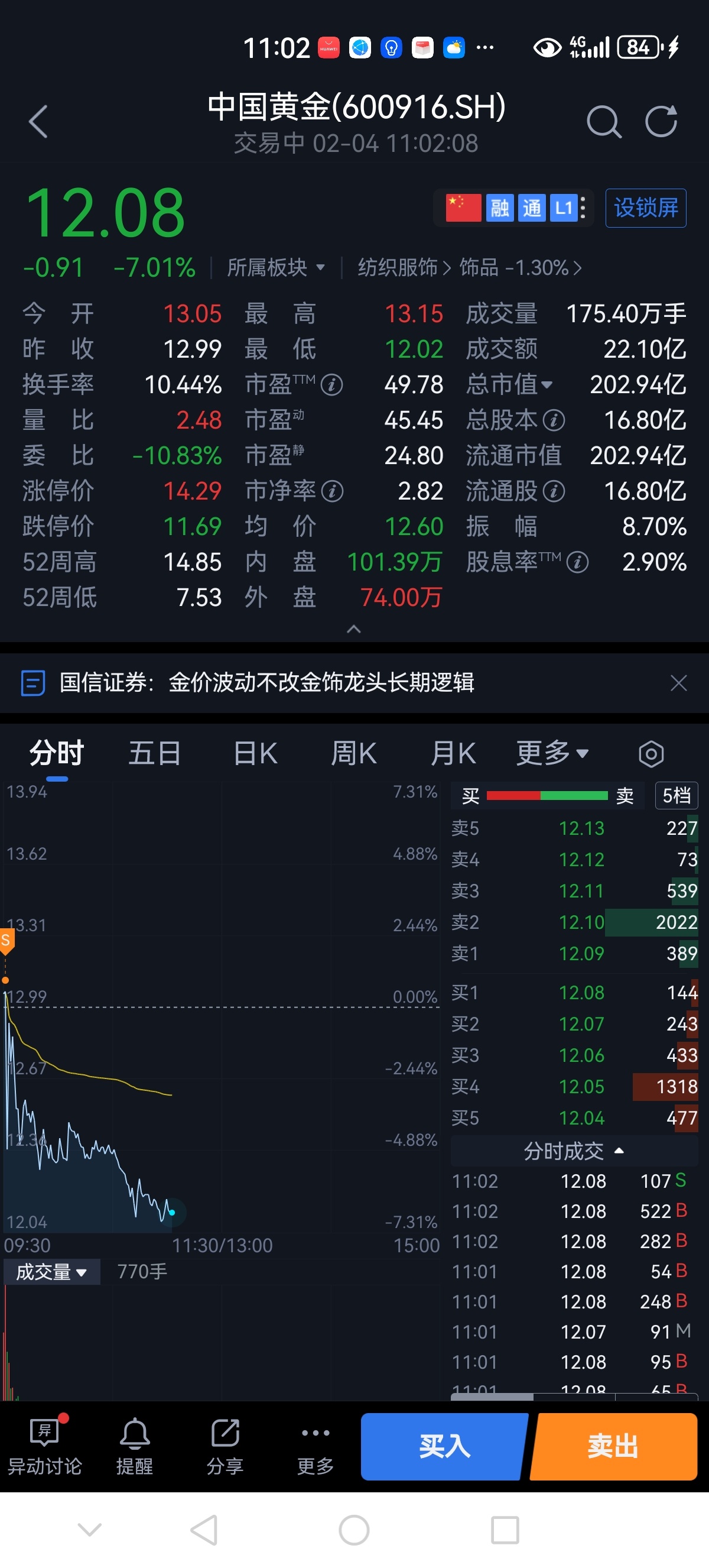 今天开盘看到大量的抛压,加上湖南黄金没有继续涨停,果断放弃中国黄金去买$青岛双星(SZ000599)$,毕竟重组题材还在,中国黄金其实昨天跌停买的时候就是希望昨天他涨停能吃20CM的,可惜了,只赚了8个点!有点小遗憾!里面的兄弟们我还是希望中国黄金大涨,大家一起赚钱的!