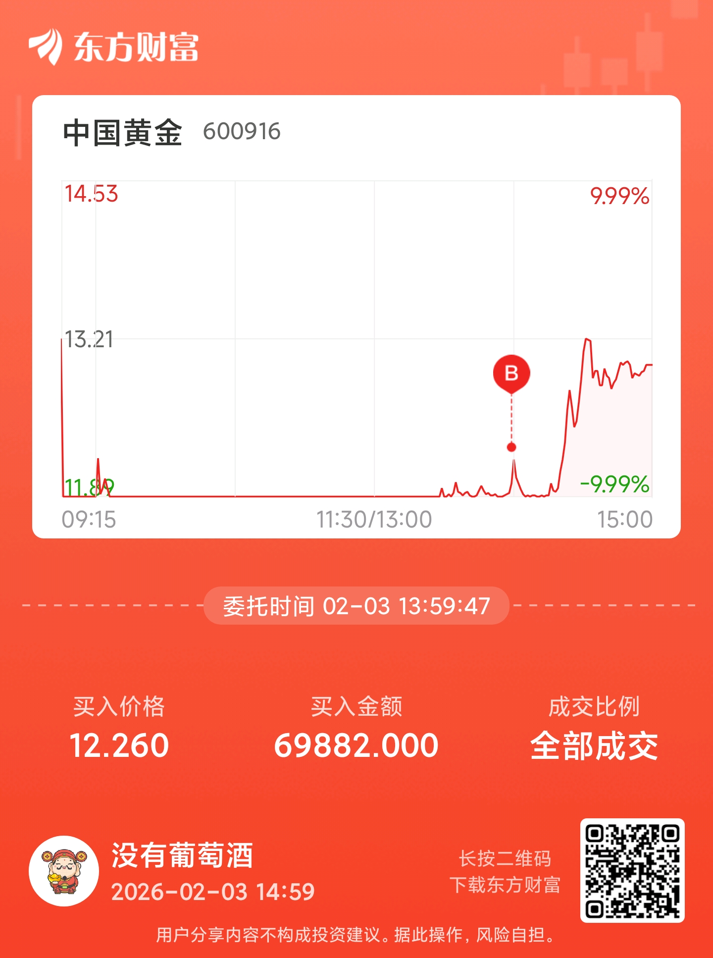 $中国黄金(SH600916)$ 坏消息:买在山顶了,好消息:买在山顶了,希望明天高开