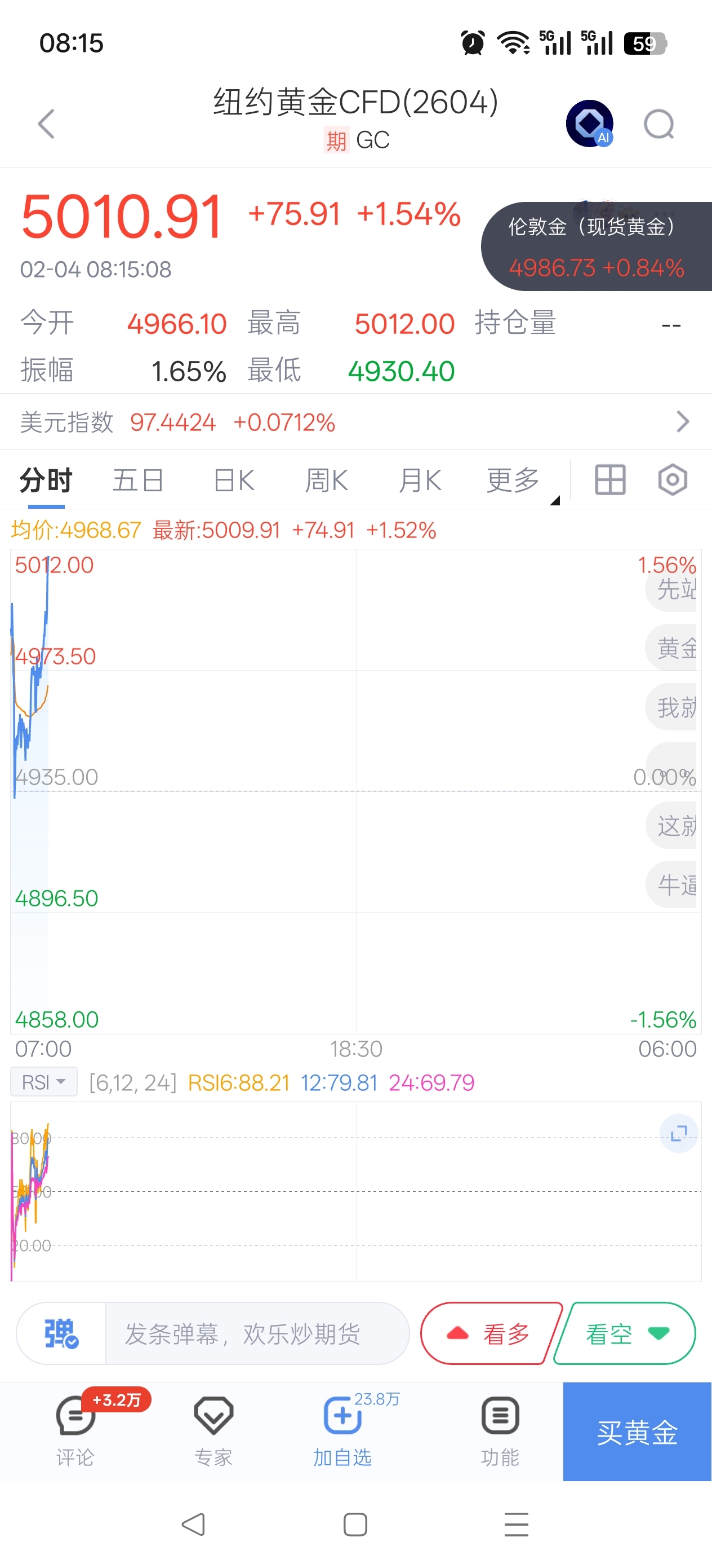 $中国黄金(SH600916)$ 最新消息。俄乌和美朗都在矛盾激化,黄金继续上涨。黄金以突破5000大关