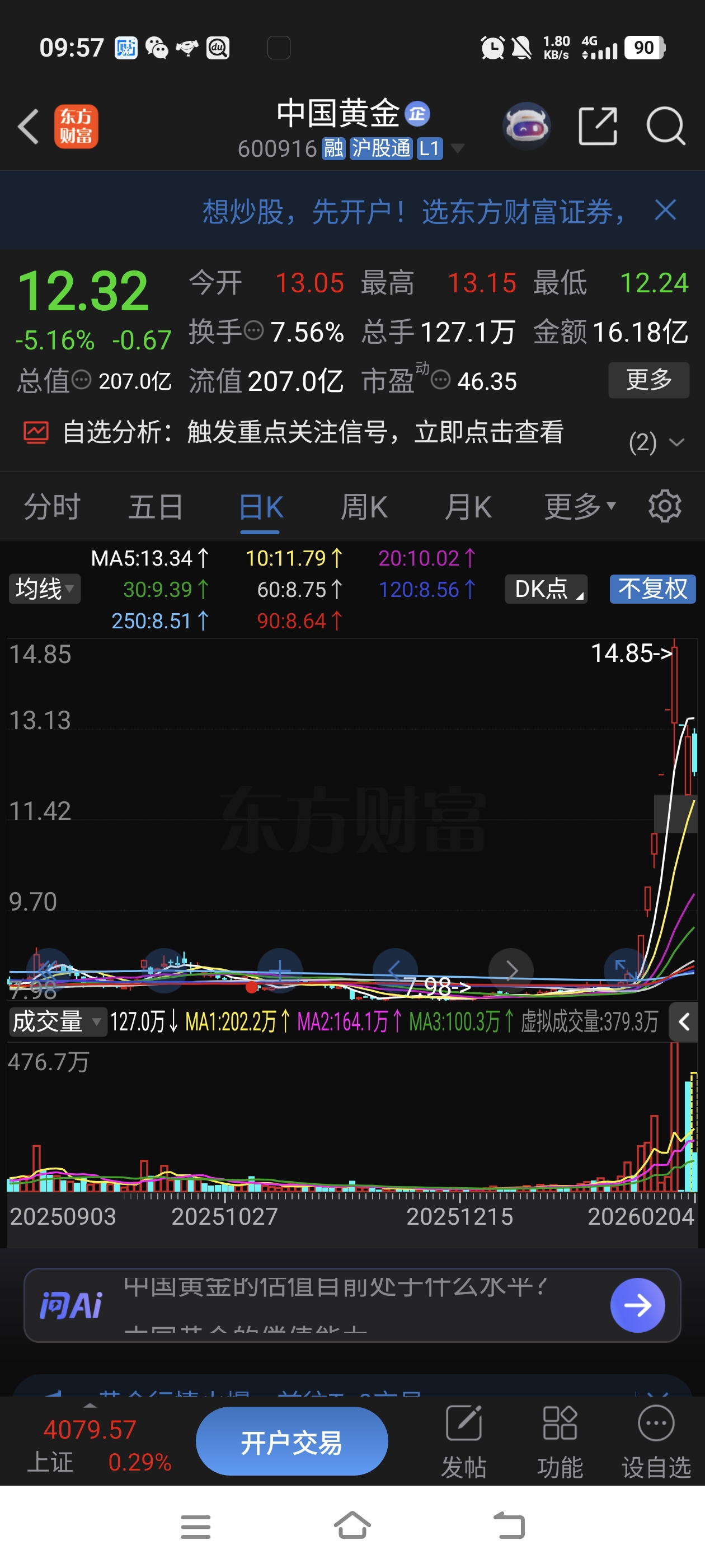 $中国黄金(SH600916)$ 昨天11.89抄底的人太多了,现在卖还有的赚,怎么可能会涨