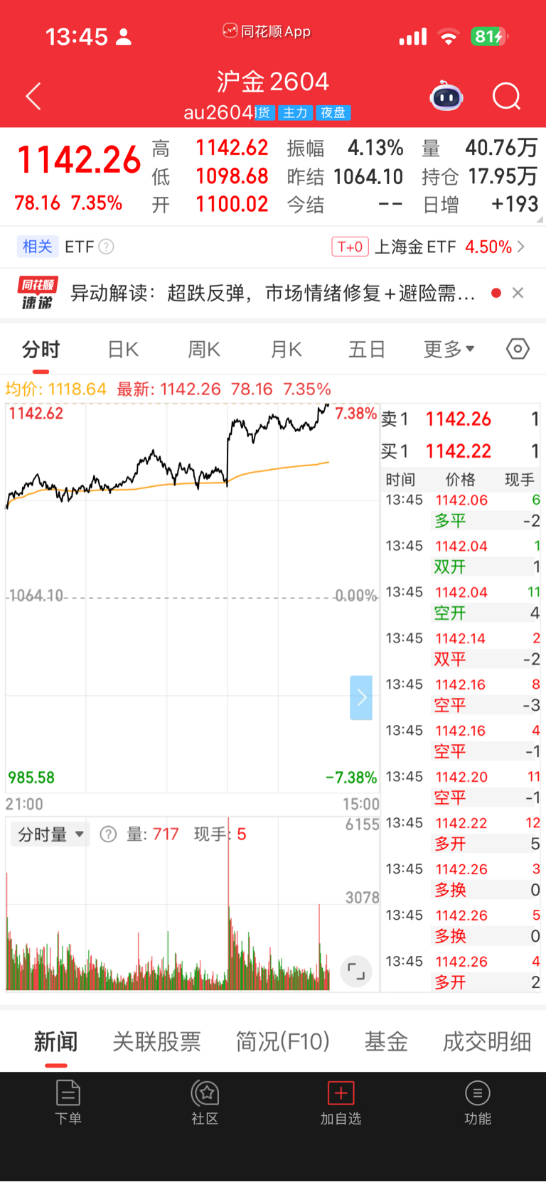 $中国黄金(SH600916)$ 沪金拉直线