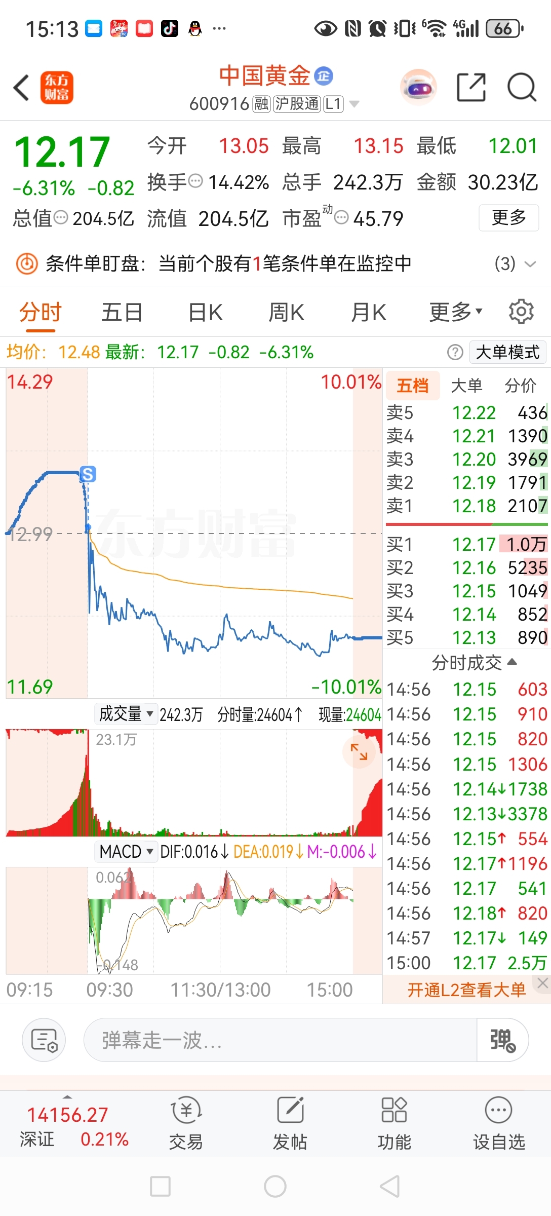 $中国黄金(SH600916)$ 兄弟们我先撤了