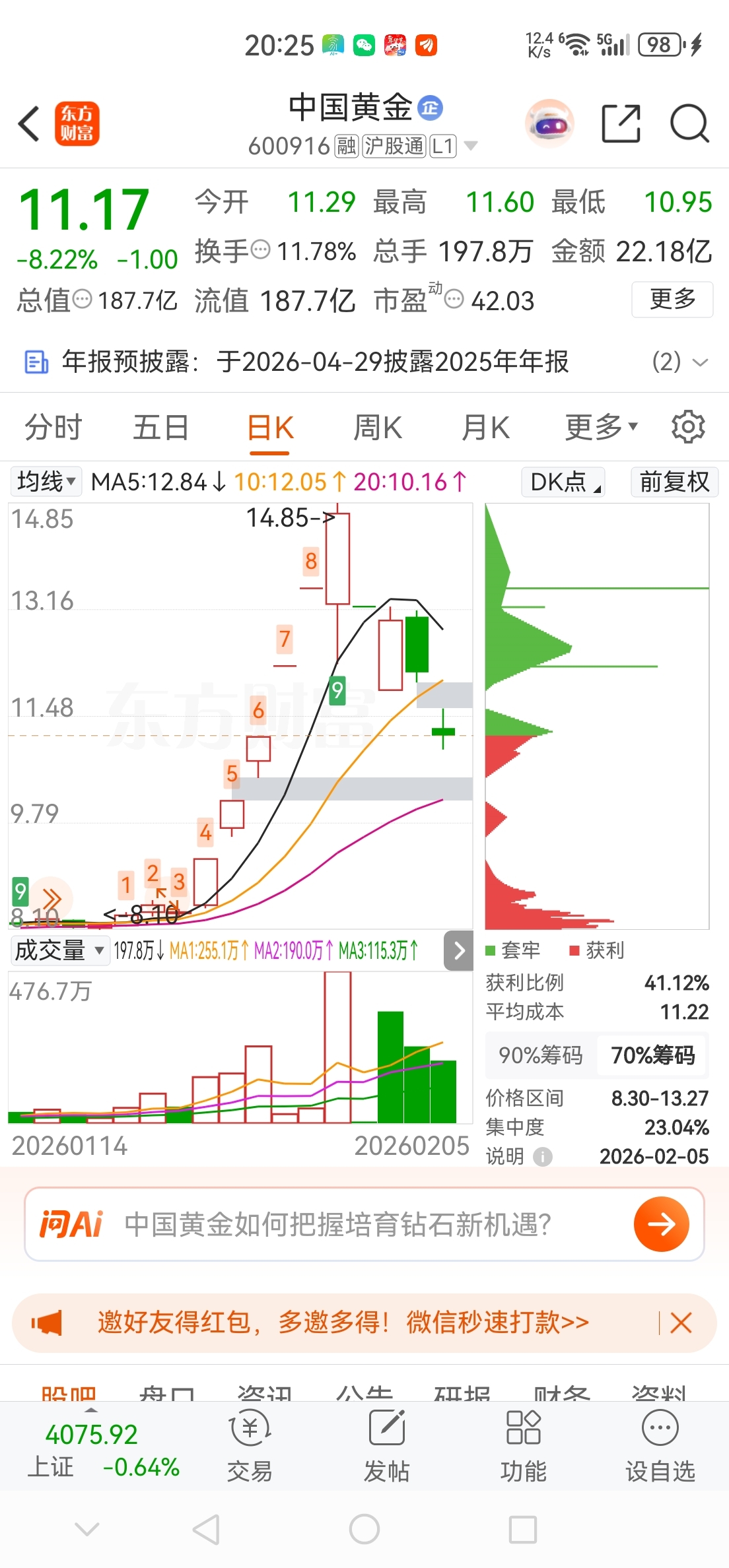 $中国黄金(SH600916)$ 10.60的缺口补了,还有10.14元的缺口明天也补一下,最下面还有个9.15元的缺口啥时候补齐?
