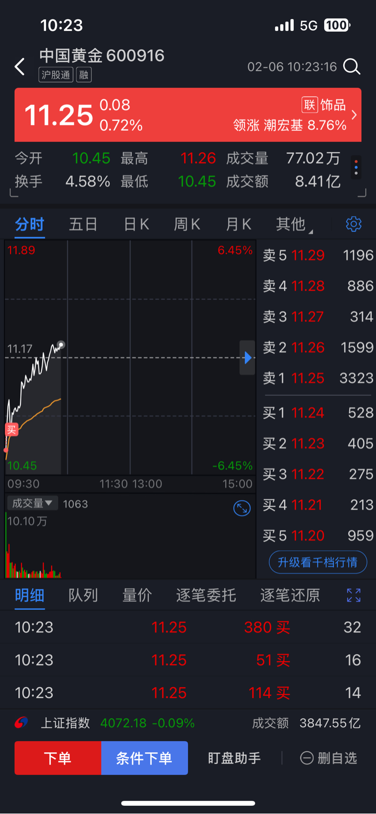 $中国黄金(SH600916)$ 冲~简直是送钱~