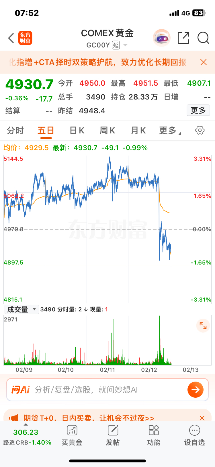 $中国黄金(SH600916)$ 黄金白银又大跌了怎么办啊?