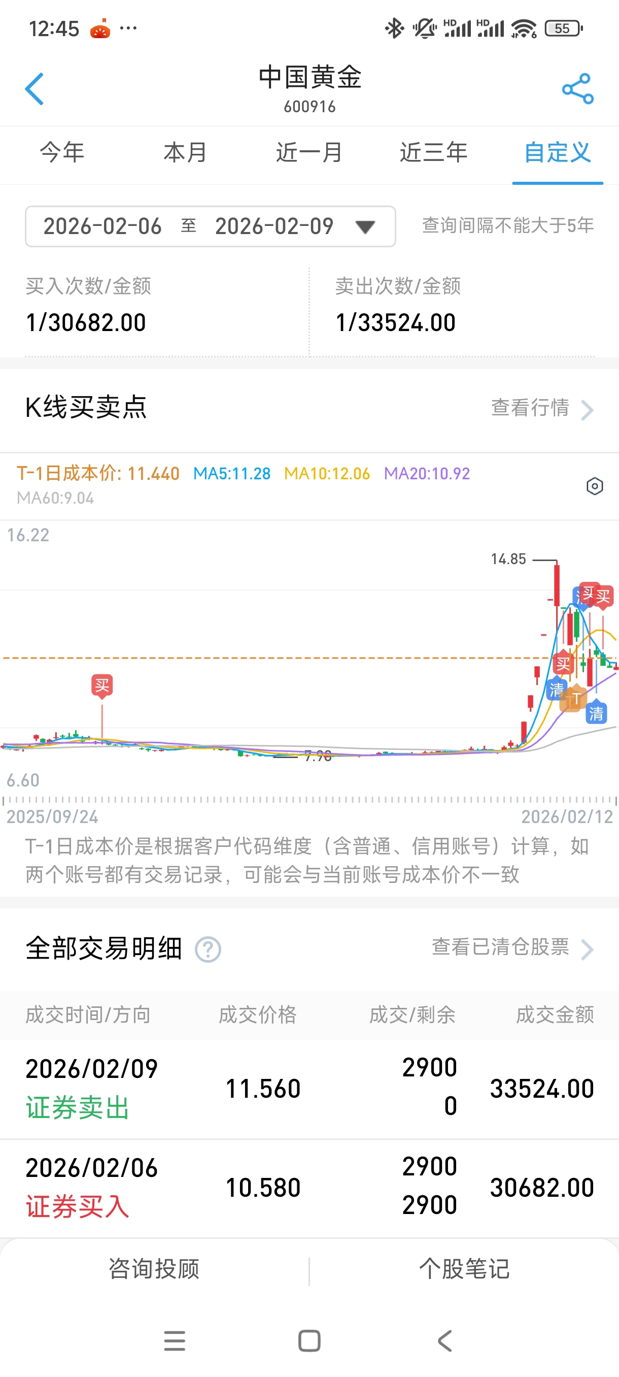 $中国黄金(SH600916)$ 9号走的,从这个股票上薅了80%的利润,等他下次探底我在来