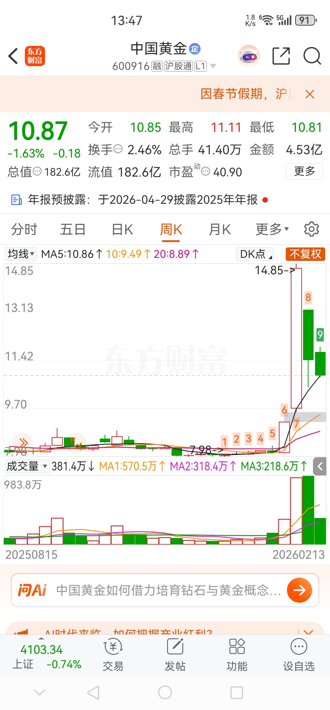 $中国黄金(SH600916)$