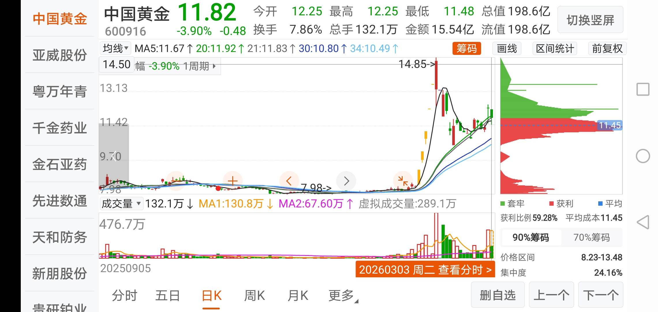 $中国黄金(SH600916)$ 从曼卡龙回来中国黄金,原因是看到其底部筹码没有减少