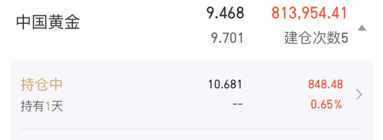 $中国黄金(SH600916)$ 第五次建仓,狂赚813954.41