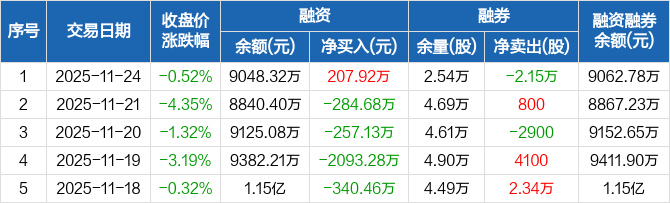 重庆燃气:融资净买入207.92万元,融资余额9048.32万元(11-24)