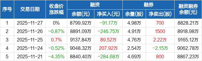 重庆燃气:融资净偿还91.17万元,融资余额8799.92万元(11-27)