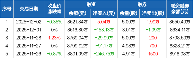 重庆燃气:融资净买入5.04万元,融资余额8621.84万元(12-02)