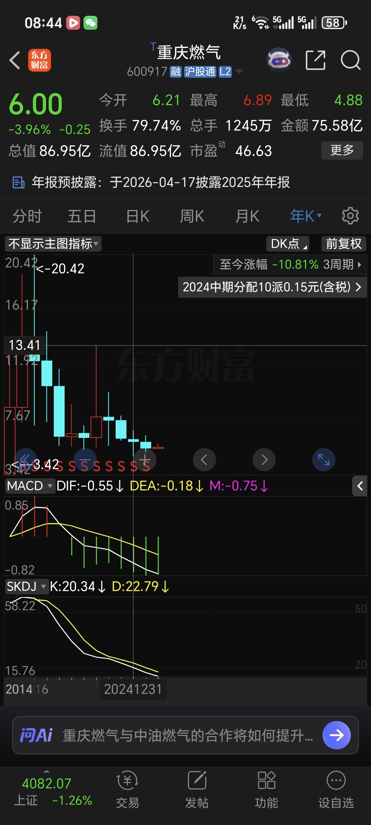 看最近很多年的低点,即使重庆燃气跌到4.88这个最低点也才只能亏十几个点了,5.