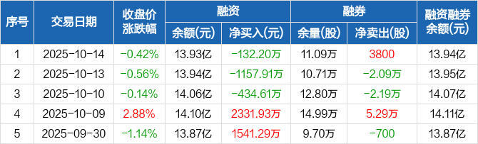 中泰证券:连续3日融资净偿还累计1724.71万元(10-14)