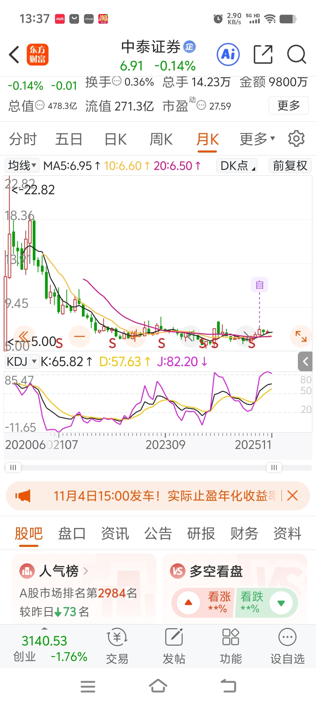 $中泰证券(SH600918)$ 山东中泰,你和证券板块的走势比比,,你就反着走,