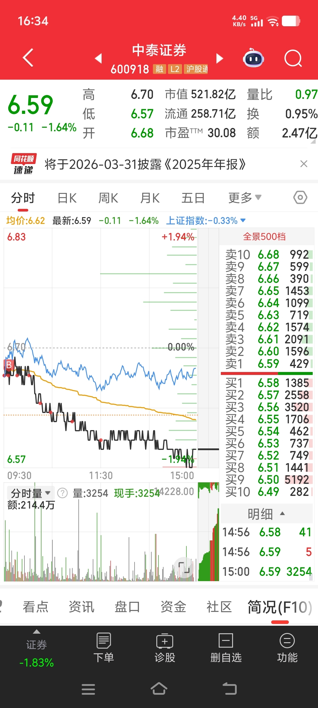 本来券商刚有点抬头的意思结果昨天来了提高保证金比率的事没办法中泰证券尾盘抛了一部