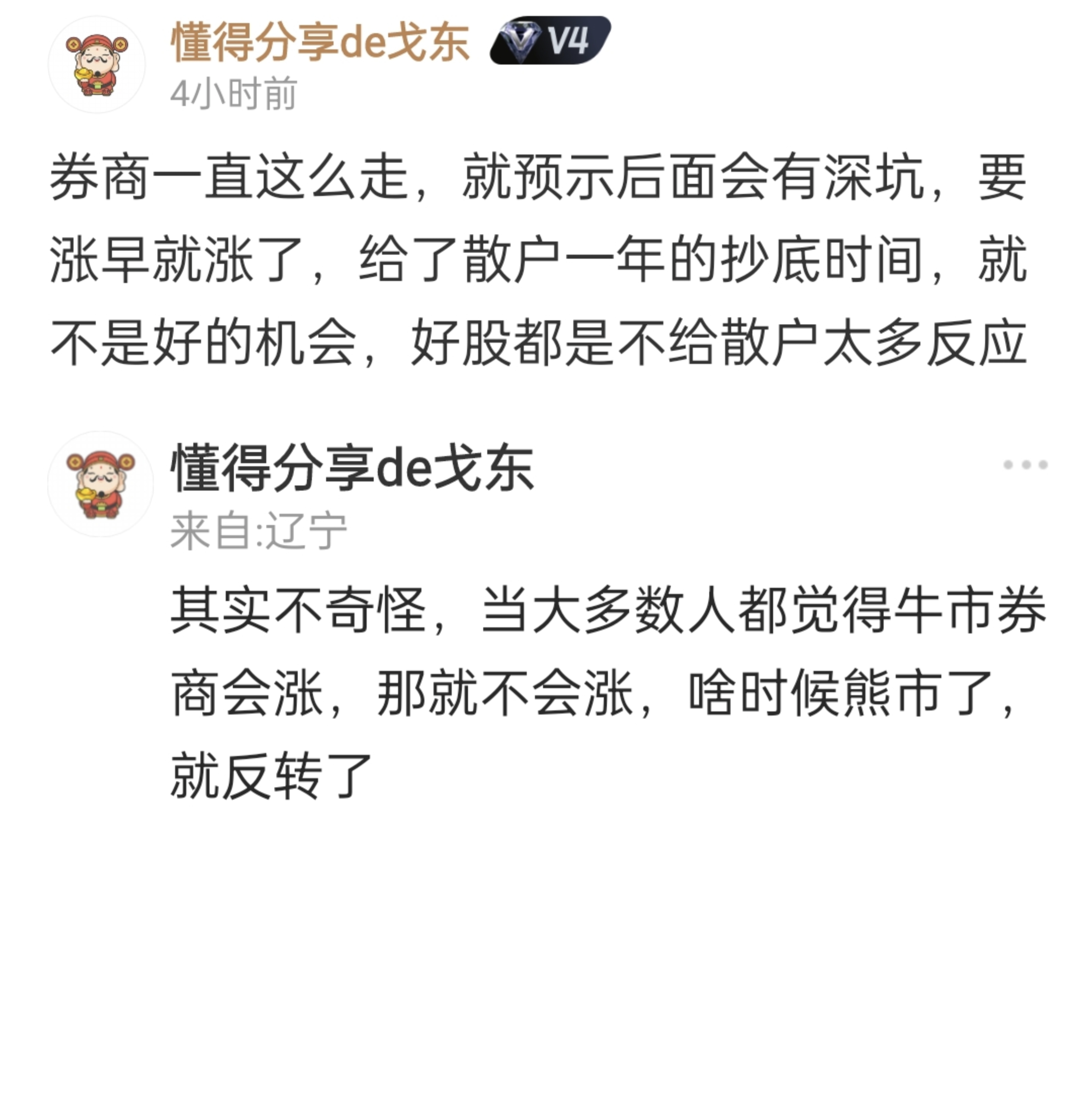 给这位老哥点赞,券商必须有一波大的暴跌