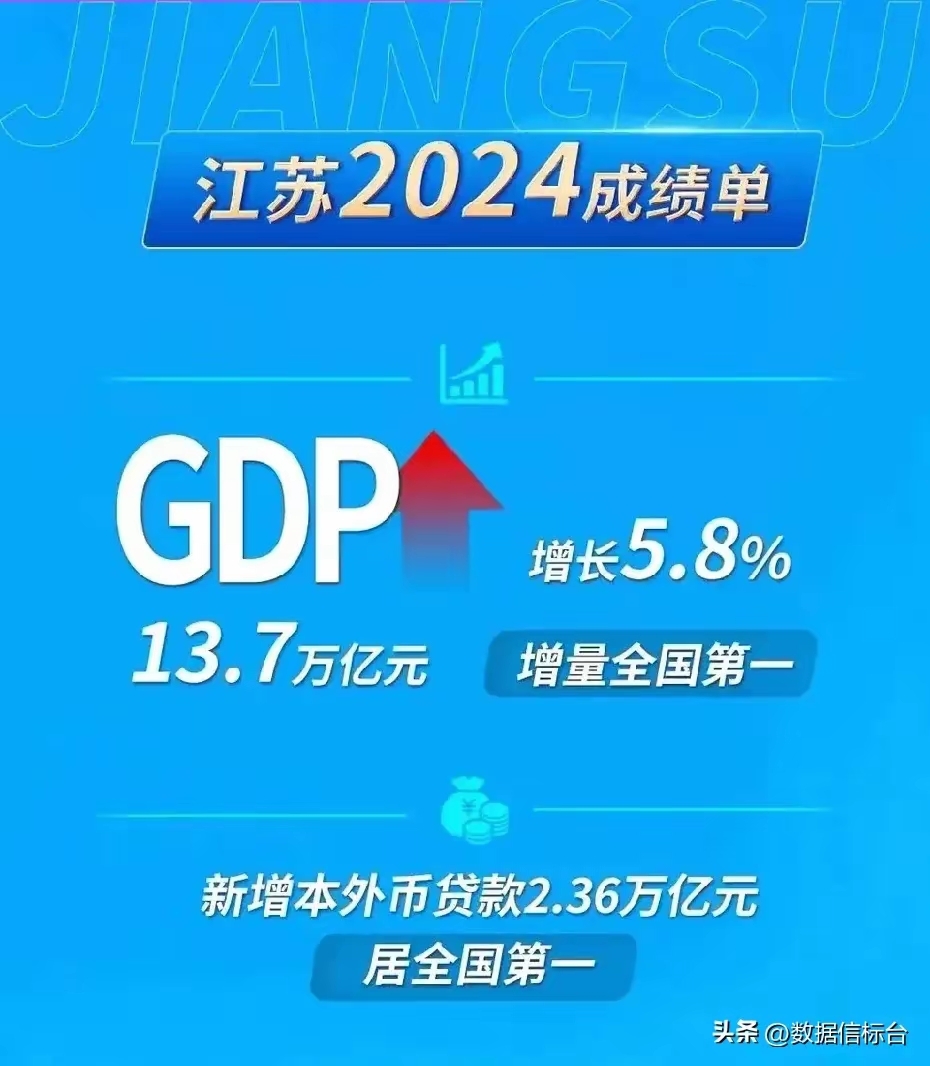 $江苏银行(SH600919)$ 2024年江苏iconGDP超13.7万亿,超越广东icon只是时间问题。目前江苏产业发展目前看来势不可挡,最亮眼的是gdp增量全国第一,本外币贷款增量全国第一,达到2.36万亿,继续看好江苏区域银行未来2年的高速发展。