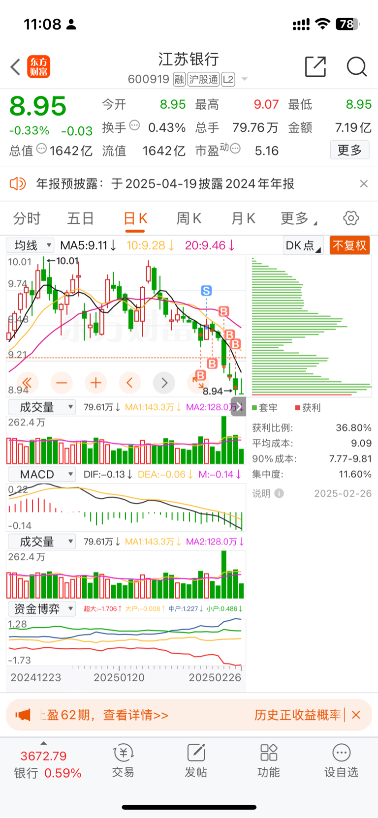 $江苏银行(SH600919)$ 应该套的不止我一个吧