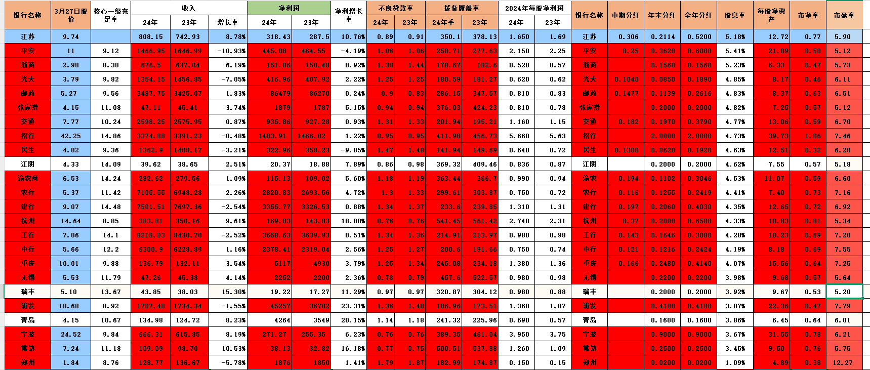 说明:有中期分红的银行,为了使用同径比较,是用复权价(即现价加上中期分红)计算的股息率。