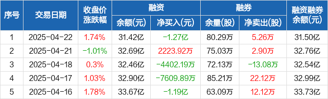 江苏银行:融资余额31.42亿元,创近一年新低(04-22)