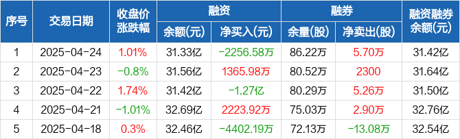 江苏银行:融资余额31.33亿元,创近一年新低(04-24)