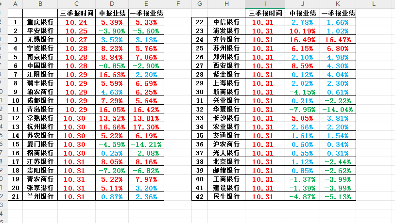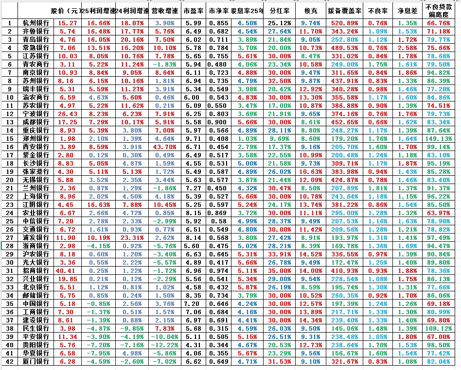 国庆最新版(截止到10月6好)42家银行业绩预告以及各项财务指标全家福来了,有需