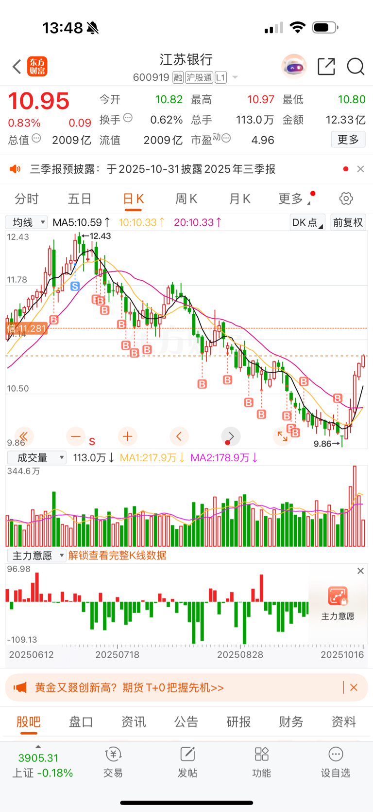 $江苏银行(SH600919)$ 这几天是真的猛,不枉我一路从山顶抄下来