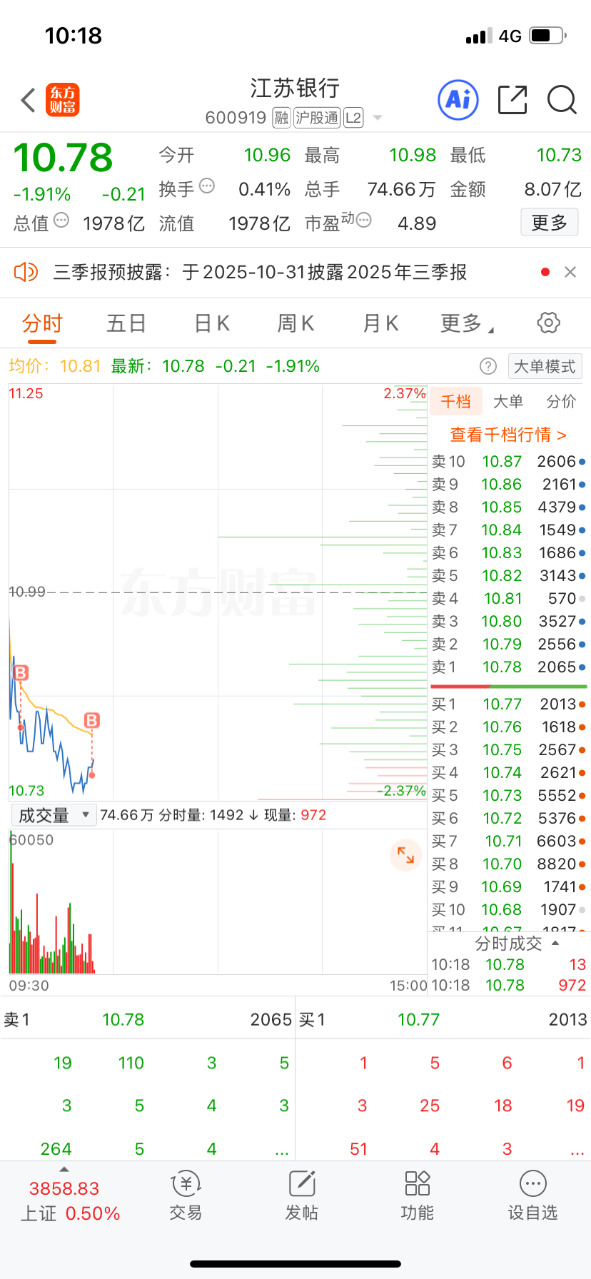 $江苏银行(SH600919)$ 满仓单调,坐等吃面
