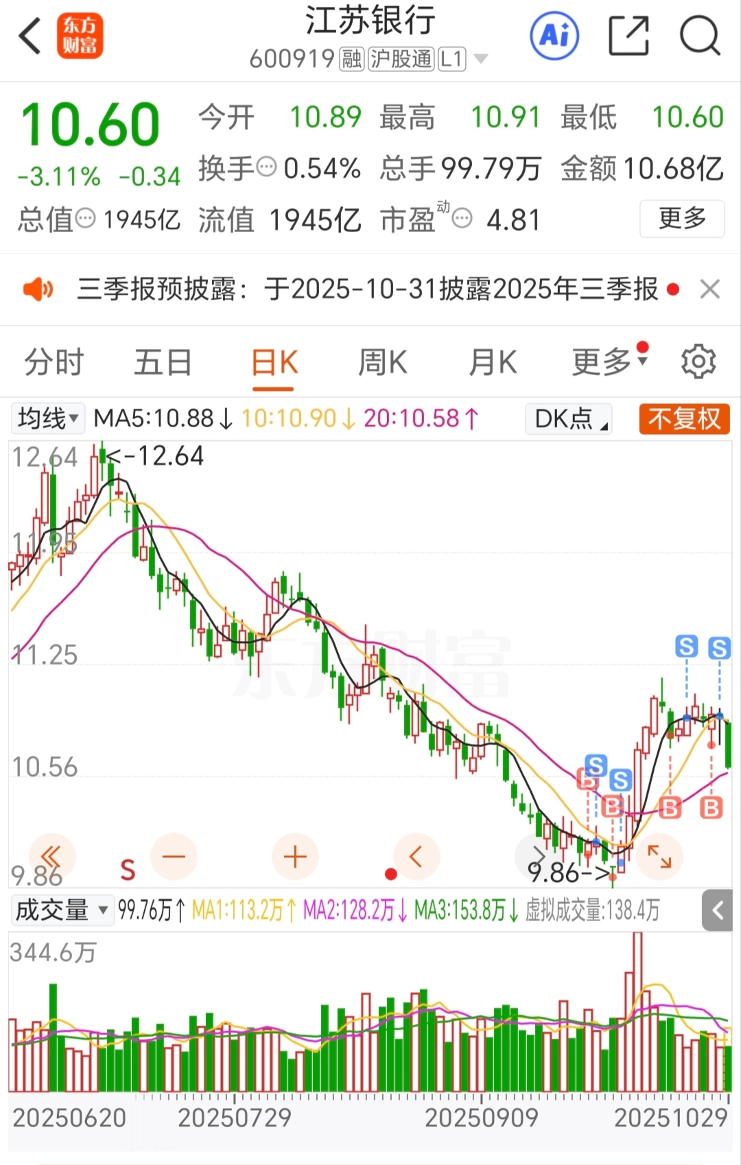 $江苏银行(SH600919)$ 昨天尾盘93走的,感觉不对劲