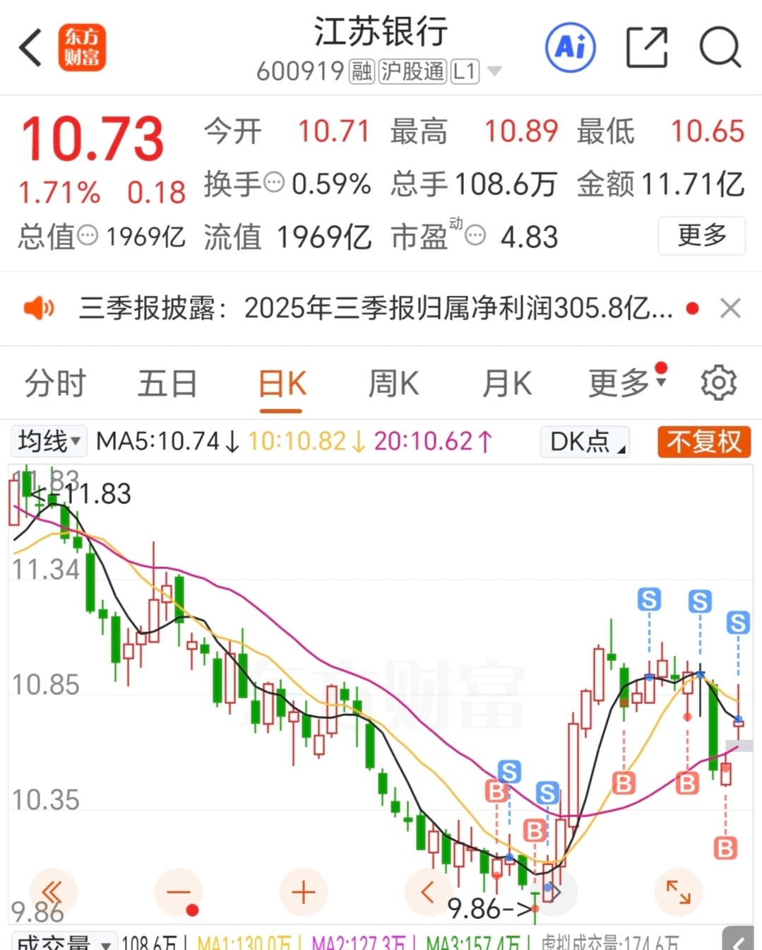 $江苏银行(SH600919)$ 昨天水下抄底,今天早上10.74走了